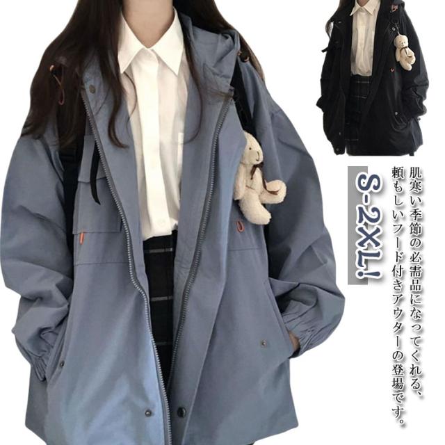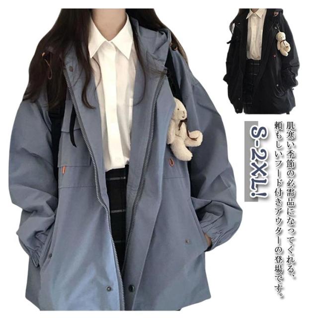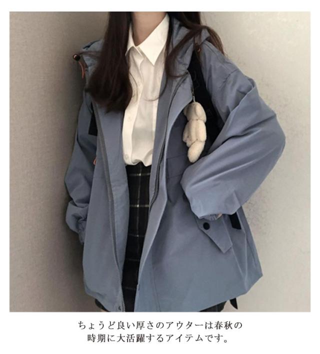 学生服 マウンテンパーカー マウンテンパーカー 春秋 ブルゾン レディース ジャケット 軽量 ウィンドブレーカー フード付き ポケット付き マウンテンパーカー アウター ミディアム丈 防風 お洒落 高校生 中学生 通勤