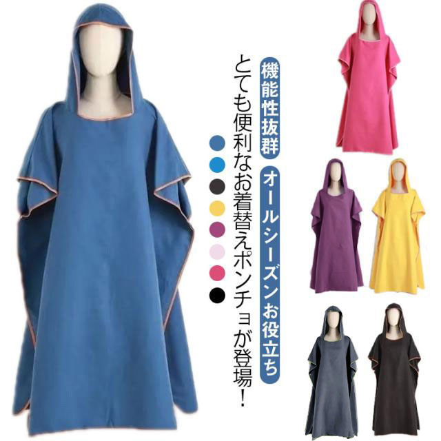 薄手 着替え サーフ ポンチョ 大人 バスポンチョ 着替えポンチョ フード付きタオル サーフ サウナポンチョ 速乾 お着替えポンチョ 吸水 メンズ レディース サーフポンチョ
