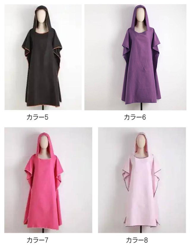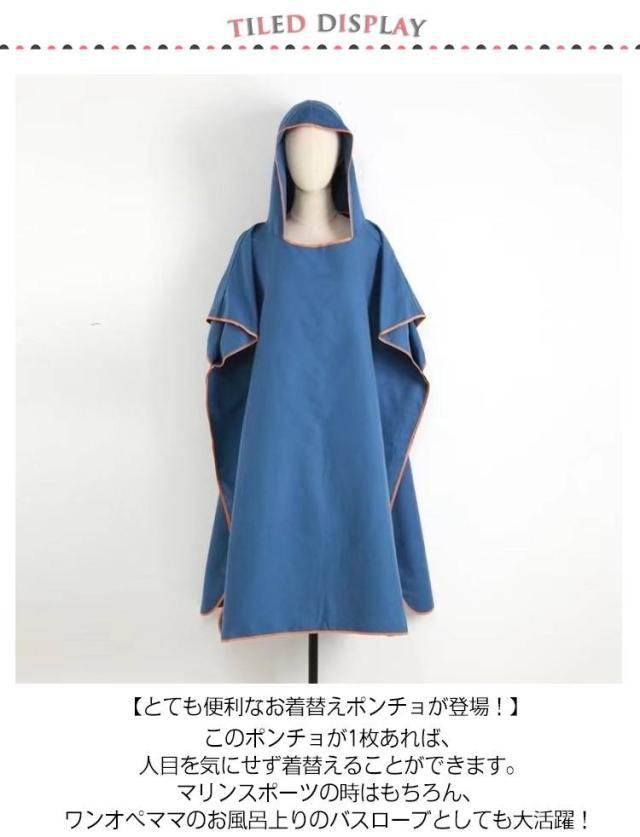 | 【とても便利なお着替えポンチョが登場!】 このポンチョが1枚あれば、人目を気にせず着替えることができます。 マリンスポーツの時はもちろん、ワンオペママのお風呂上りのバスローブとしても大活躍! 【オールシーズンお役立ち】 夏は日焼け防止やエアコン対策として、冬はウェットスーツや服の上から羽織って防寒対策に!またお風呂上りのワンオペママのバスローブや、サウナポンチョとしても使えてオールシーズンお役立ち間違いなしです。 【機能性抜群】 ゆったり羽織れるサイズですが、胸元が気にならない作りになっています。 前面には、大きめのポケットがついているので、スマートフォンや鍵など入れておけます。 また首元の後ろ側には、濡れたポンチョをひっかけて乾かせるフックが付いているので大変便利にご使用いただけます。 【超軽量マイクロファイバー】 新開発のマイクロファイバーを採用しており、吸水性、速乾性にたいへん優れています。 一般的なサーフポンチョは厚手の物が多く、持ち運びや普段使いにはヘビーは物が多いですが、中厚サイズで548gと普段使いしやすいサイズを実現しました。 | |