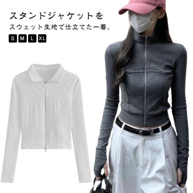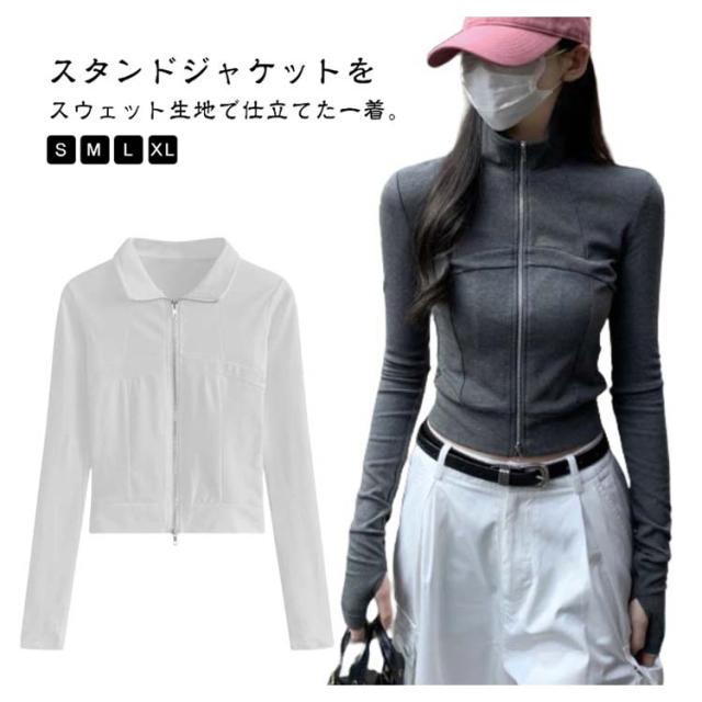 レディース フルジップ スウェットジャケット スタンドカラー スウェットジャケット ブルゾン アウター スウェットパーカー ショート丈 部屋着 ルームウェア おしゃれ 無地 通勤 通学