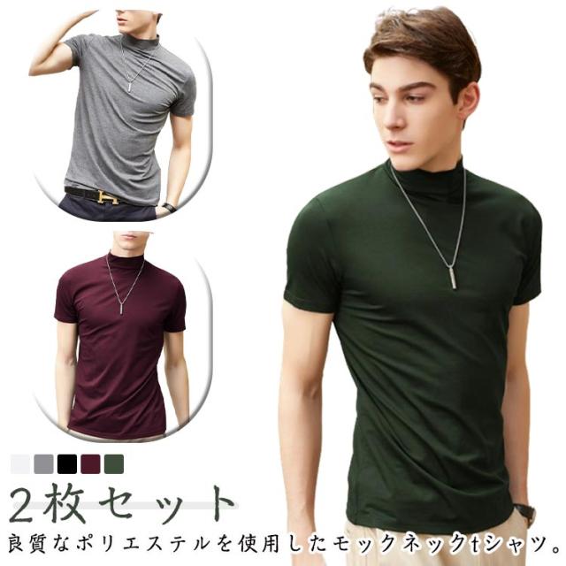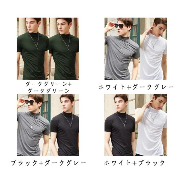 【2枚セット】 【2枚セット】 ゴルフTシャツ モックネックシャツ ハイネック 紳士服 ゴルフウェア tシャツ ポロシャツ 半袖 ビジネス カジュアル カットソー スポーツ ティーシャツ インナー 半袖Tシャツ 春夏 スポーティ サッカー テニス UVカット