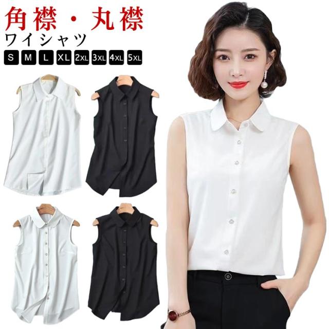 ノースリーブ シャツ インナー レディース 襟付き 春 大きいサイズ 夏 トップス Yシャツ 通勤 ワイシャツ タンクトップ 秋 冬 丸襟 レイヤード 無地 袖なし 重ね着 つけ襟 付け襟 ノースリーブ 角襟