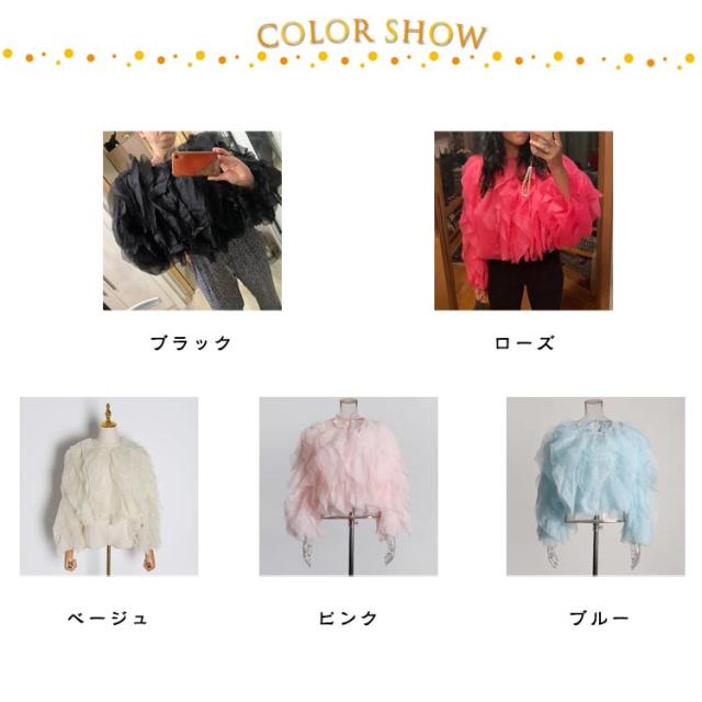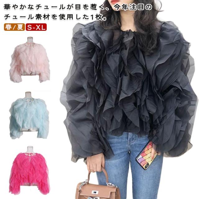 可愛い チュールトップス チュールフリルブラウス 春 パーティドレス クルーネック プルオーバー セレモニー チュール クルーネック 夏 チュールフリルブラウス オフィスカジュアル 通勤 結婚式 大人 入園式 入学式 ブラック ローズ ベージュ ピンク