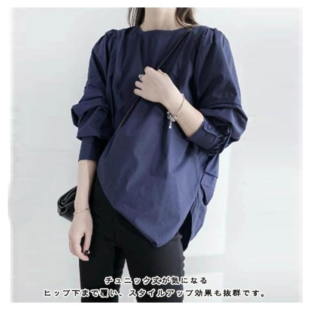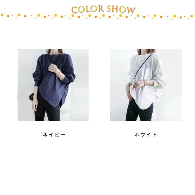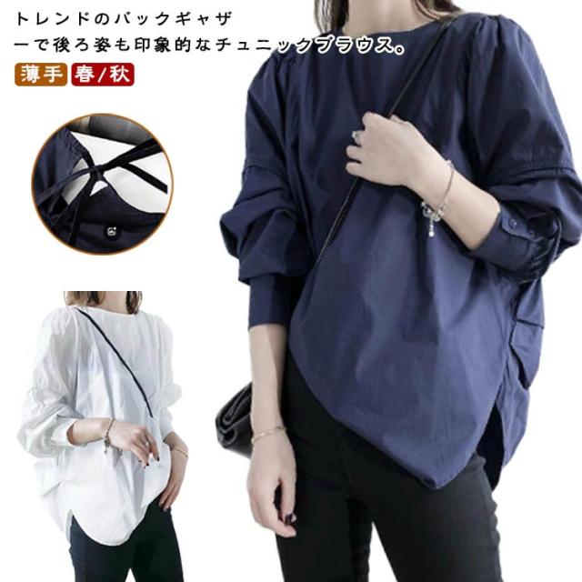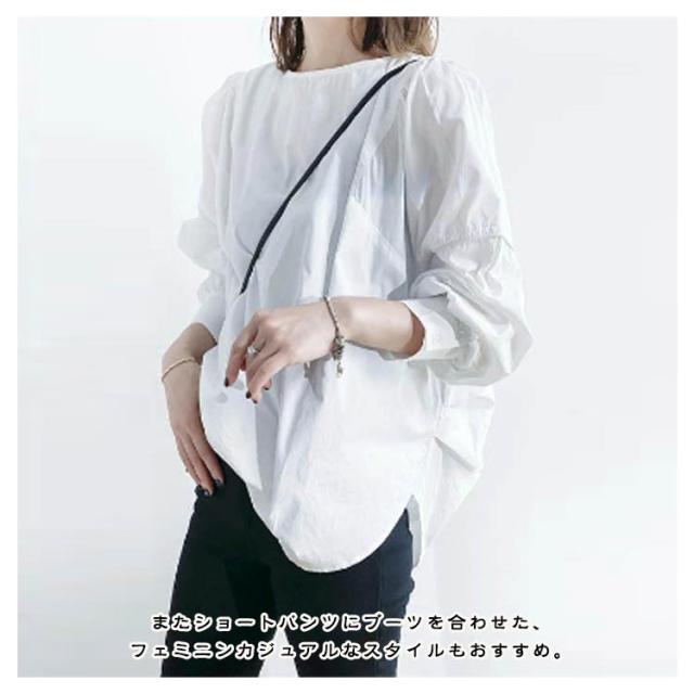 ナチュラルカラー 長袖 レディース チュニックブラウス 薄手 オーバーサイズ 長袖チュニック 長袖チュニック ロング スリット ラウンドテール ゆったり トップス チュニック プルオーバー 白シャツ 春 秋 ホワイト