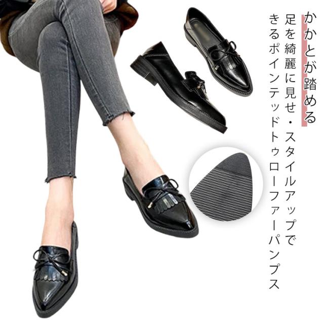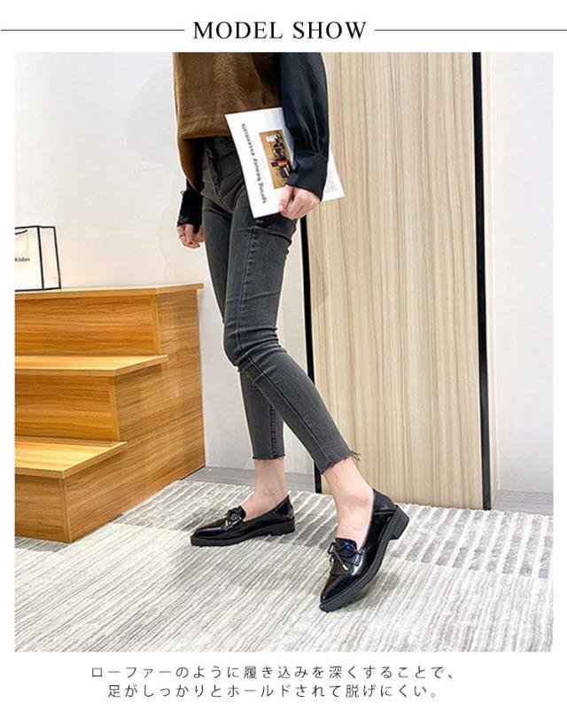 | 足を綺麗に見せ・スタイルアップできるポインテッドトゥローファーパンプス。 足が綺麗に見えるポインテッドトゥパンプス、ローヒールでもしっかりスタイルアップできて、 毎日履きたくなるリボンローファーパンプスです。 ローファーのように履き込みを深くすることで、足がしっかりとホールドされて脱げにくい。 かかとが踏める2WAYデザイン、通勤や通学などデイリーに活躍してくれます。 | |