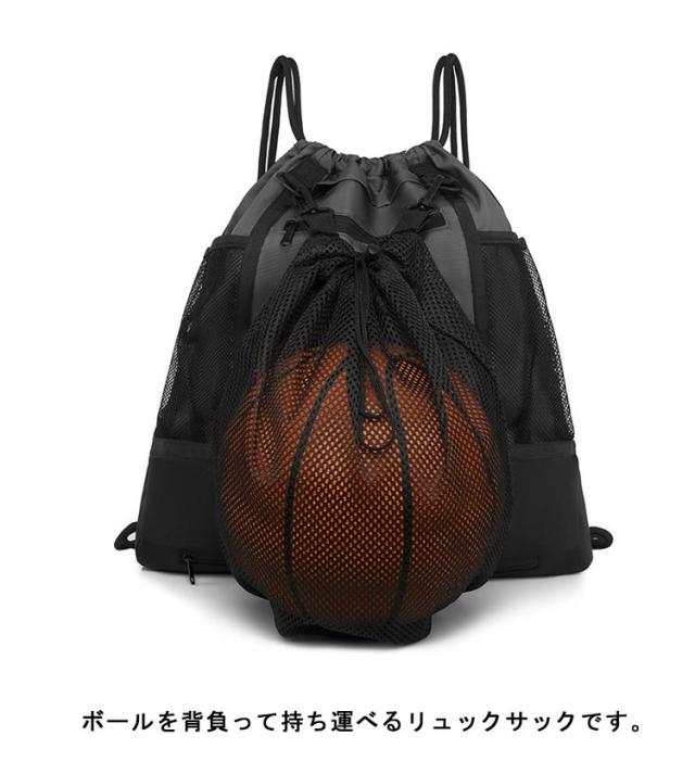 | ボールを背負って持ち運べるリュックサックです。 A4の雑誌や教科書、ファイルもラクラク入る!ジムの着替えやスポーツ用品などの持ち運びにも便利。 このスポーツバッグは縄を引く設計で、開けても閉めてもとても便利です。 ボールを収納するメッシュ袋は外付けされているためメイン部分と分けて収納可能。 サイドのメッシュポケットには、ペットボトルや折り畳み傘、水筒を収納できます。 表地には撥水加工を施されており、小雨程度であれば浸水を防ぎます。 サッカー、ジム、水泳、キャンプ、部活、登山、旅行など様々な場面で大活躍です。 | |