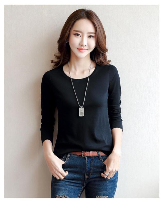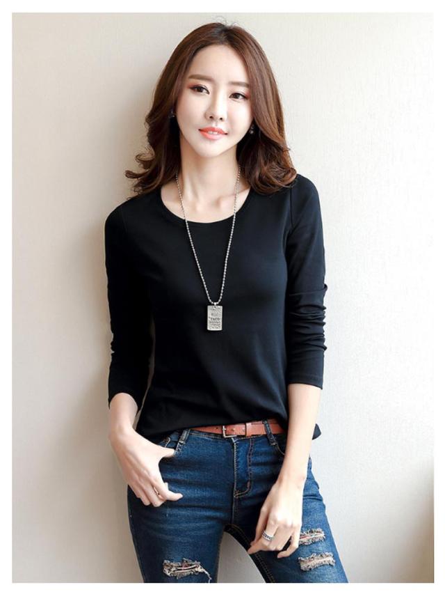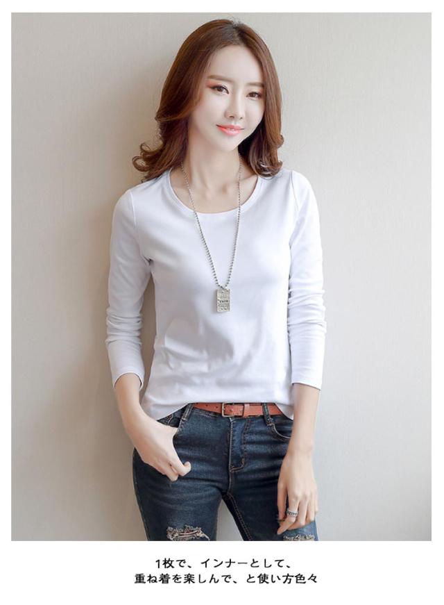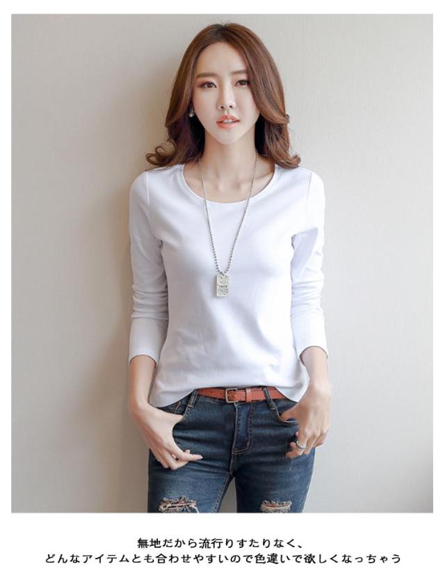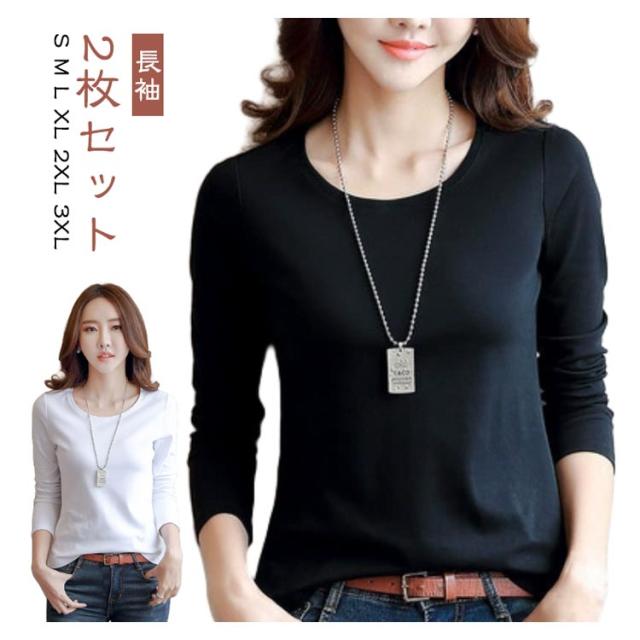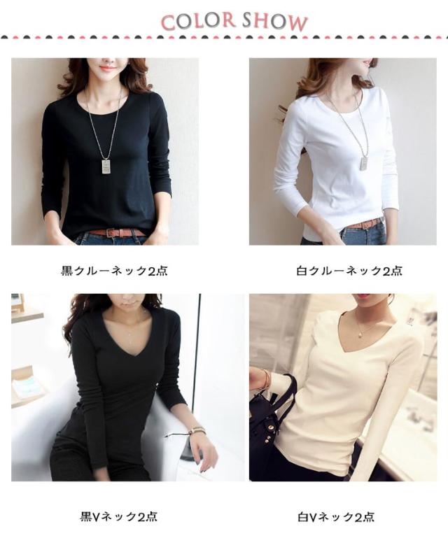 2点セット!長袖 春 スリム 黒 カットソー Tシャツ 秋 レディース シンプル トップス 細身 無地 Vネック クルーネック Tシャツ ラウンドネック 白 ホワイト 大きいサイズ プルオーバー ブラック インナー S M L XL 2XL 3XL