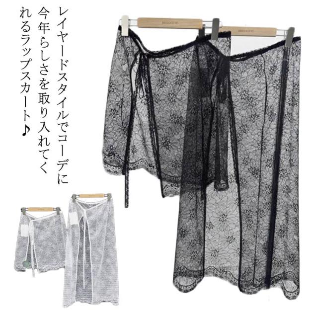 巻きスカート レース 大人可愛い 重ね着 チュール 花柄 ロング丈 ショート丈 レース巻きスカート レーススカート 総レース 付け裾 薄手 透け感 カラー 体型カバー シースルー ラップスカート ズボンの上 ボトムス ふんわり 送料無料