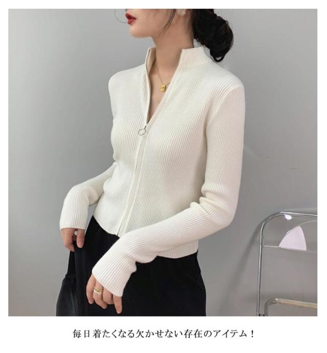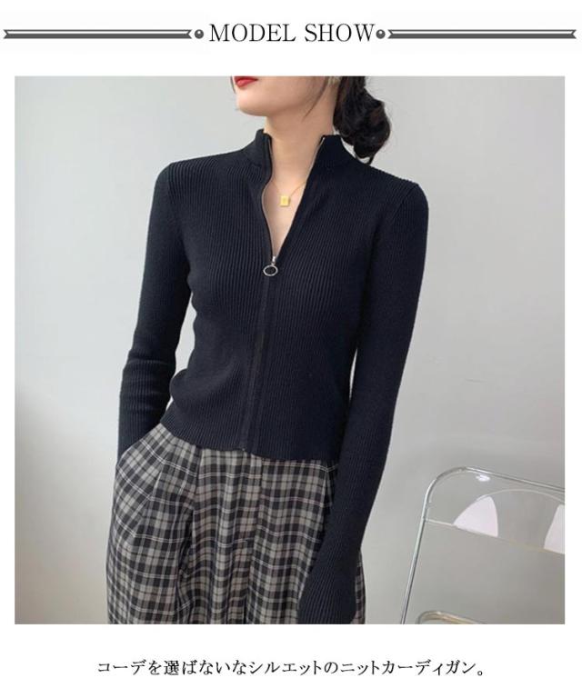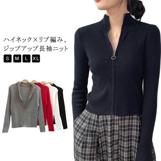 ハイネック ジップアップ 上品 長袖 ショートニット 大人 ニットカーディガン ハイネック 春 20代 レディース 無地 羽織 OL シンプル 女性 おしゃれ 重ね着 30代 40代 50代 きれいめ お洒落 大人 女性 スタンドカラー カジュアル 秋 冬