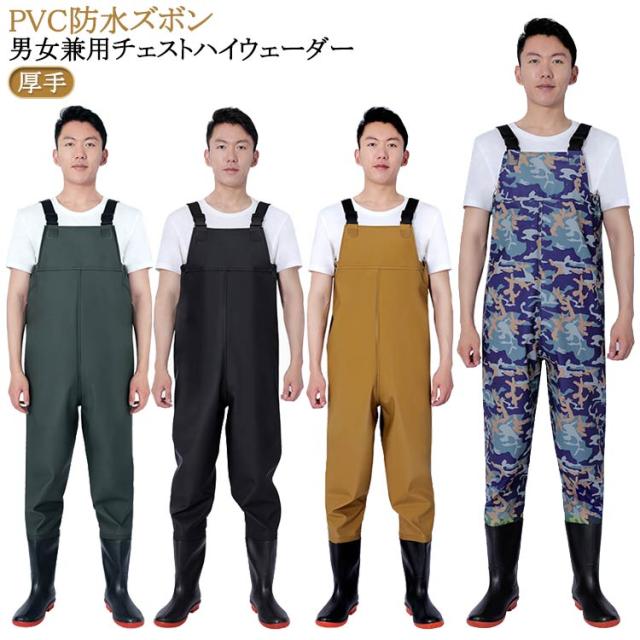 チェストハイウェーダー ウェーダー 大きいサイズ ウエストハイ 胴付長靴 男女兼用 ウェーダー 作業服 厚手 PVC防水ズボン つなぎ 長靴 アウトドア フィッシング 漁業 水産 農作業 釣り用 防災