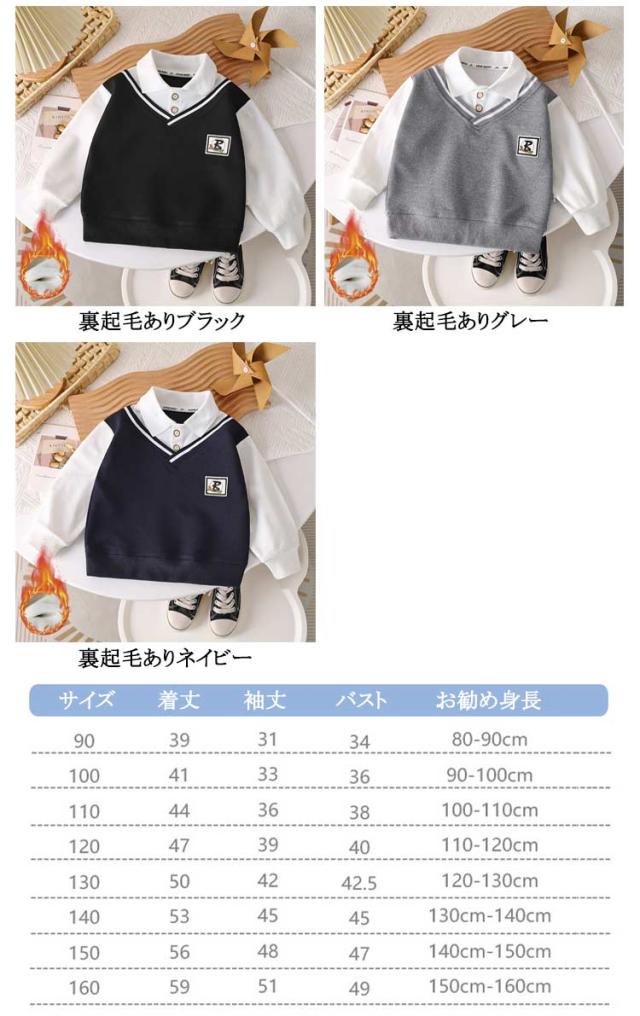子ども 襟付き 90cm トップス レイヤード風 レイヤード風 男の子 130cm プルオーバー 子供服 160cm ベビー 120cm フェイクレイヤード 100cm 110cm 秋冬 キッズ トレーナー 140cm 通園 通学 スウェット 幼稚園 運動会 カジュアル