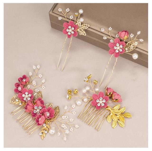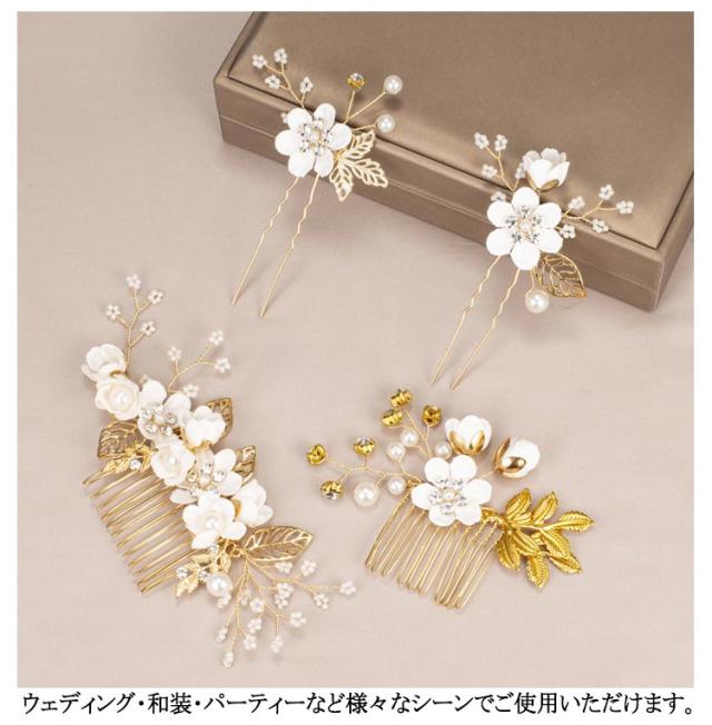 髪飾り 卒業式 結婚式 花 浴衣 ヘアピン 着物 フラワー ヘッドドレス パール ヘアアクセサリー コーム Uピン かんざし お呼ばれ ウェディングにも 髪飾り 成人式 七五三 披露宴 パーティー 入学式 和装 ヘアアクセサリー 4点セット パール 髪飾り ヘッドドレス