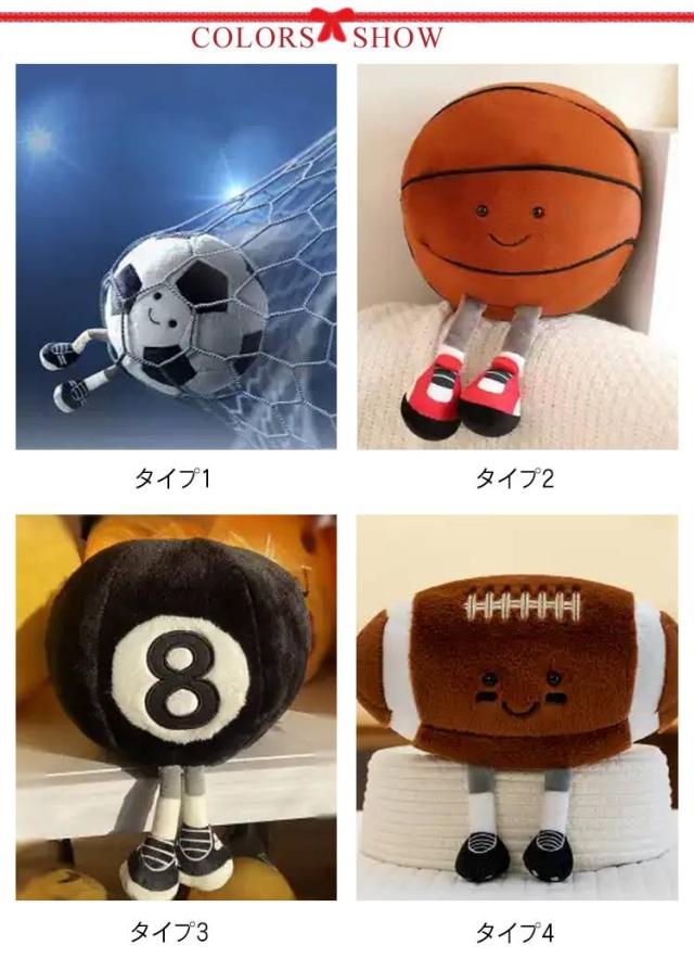 | キュートで癒されるボールぬいぐるみ。 ふわふわ肌触り、安心の抱き心地 高品質のぬいぐるみ生地を使用し、なめらかで柔らかい手触り。しっかりしたPP綿入りで、ふんわりモチモチ、赤ちゃんにも優しい安心素材。 ユニークなボールデザイン&かわいい表情 ボールのデザインに、愛らしい表情や個性的なアクセントをプラス!おもちゃとしてはもちろん、お部屋のインテリアにもぴったり♪ 多用途&ずっと一緒に! お子さまの安眠おともぬいぐるみとして、遊び相手として、さらにはプレゼントとしてもおすすめ。 ストレス解消にぴったりの癒し系 もちもちした弾力で、抱きしめるだけで癒される♪ ギュッと抱っこすれば気分もリフレッシュ!お子さまだけでなく、大人にもオススメのリラックスアイテムです。 | |