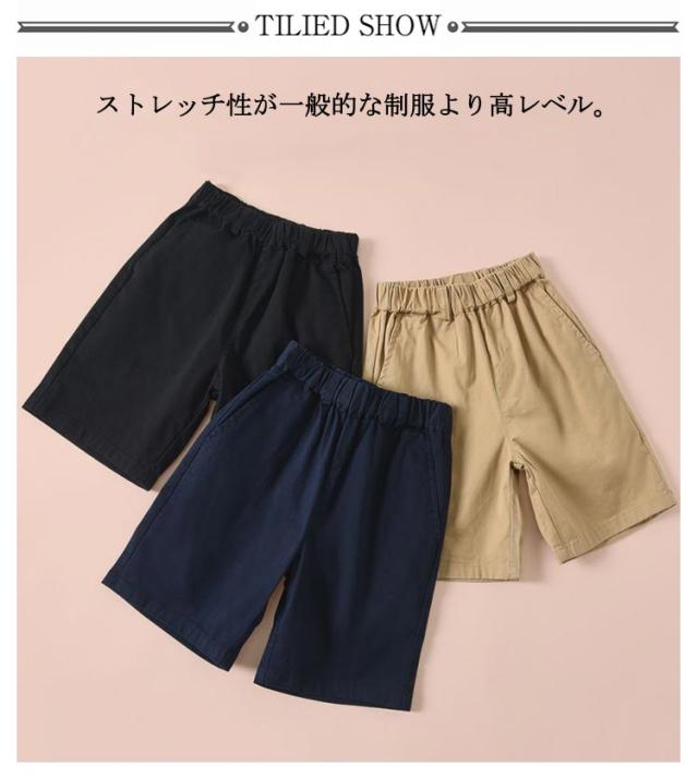小学生 ハーフパンツ ウエスト 半ズボン 5分丈 綿 黒 小学生 ベージュ 伸縮性 紺 コットン 卒業式 薄手 入学式 ストレッチ 通学服 洗える 学生服 キッズ ショートパンツ キッズ ジュニア スクール 小学校 小学生 冠婚葬祭 発表会 学生ズボン 黒 紺