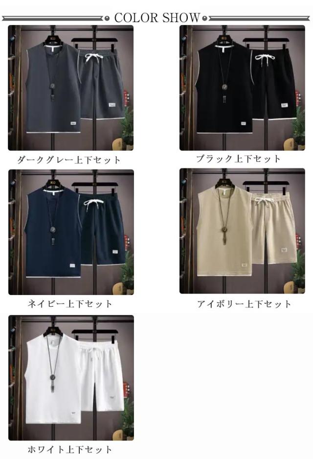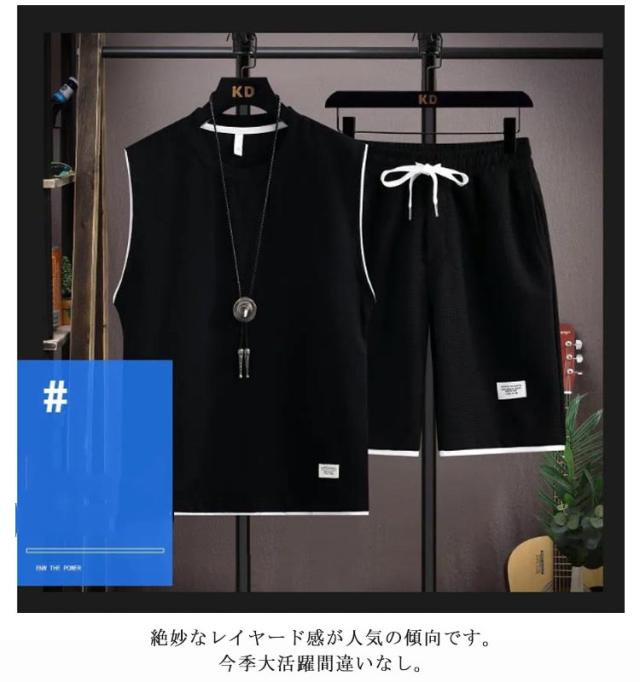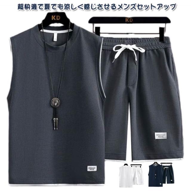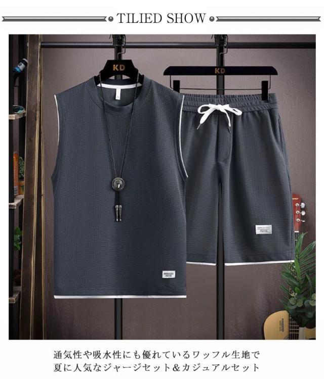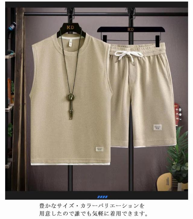 トップス タンクトップ ショートパンツ スウェット上下セット ハーフパンツ スウェット上下セット 上下セット スウェット カットソー tシャツ トレーナー ノースリーブ 袖なし ワッフル生地 ジャージ メンズ ズボン 通気性 春夏