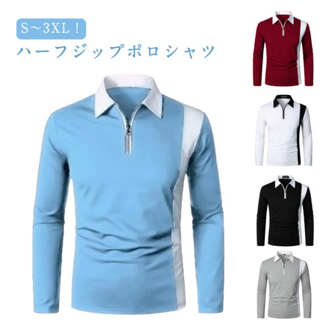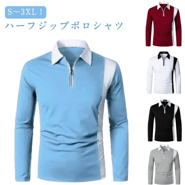 送料無料 長袖 ゴルフウェア メンズ ゴルフシャツ 30代 送料無料 ポロシャツ ゴルフポロシャツ ハーフジップ POLOシャツ スポーツ Tシャツ 制服 オフィス ビジネス カジュアル 切替 配色 おしゃれ 春 秋 冬 ユニフォーム 40代 50代 父の日