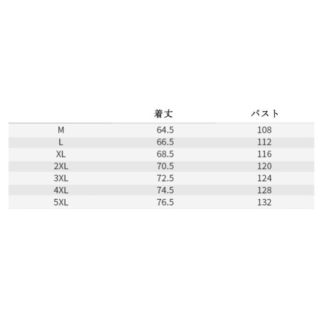 | サイズについての説明 | M L XL 2XL 3XL 4XL 5XL サイズ:写真通り ※上記サイズは平置き実寸になります。サイズ表の実寸法は商品によって1-3cm程度の誤差がある場合がございます。 |