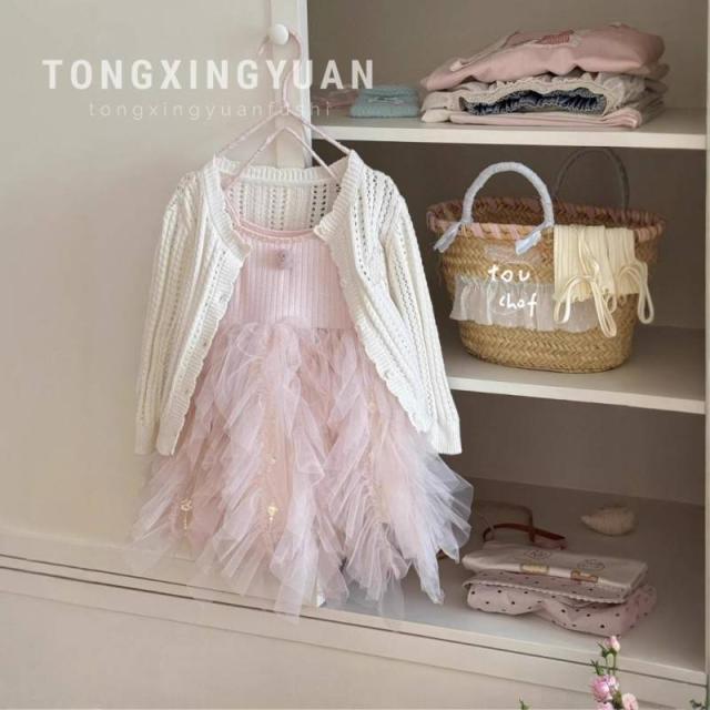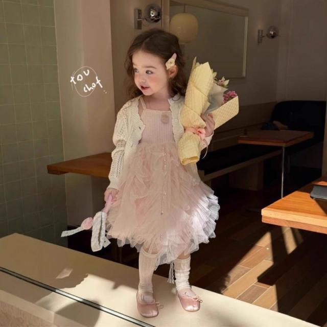 女の子 キッズ服 子供服 ピンク 無地 キャミソールワンピース ベージュコート 2点セット 甘い系 春夏新作 可愛い 新品 韓国風 1-6歳