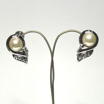 ネジバネ式 パールとクリスタルのイヤリング E 0807