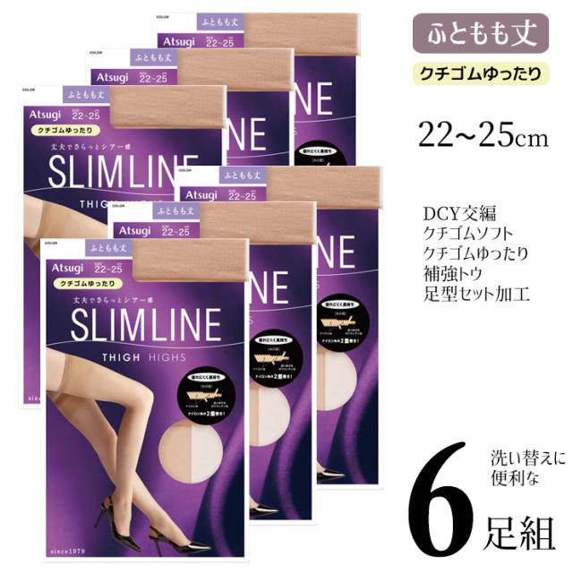 太もも丈ストッキング アツギ New スリムライン ふともも丈 ゆったり FT6000 6足組 送料無料 パンスト 太もも オーバーニー ストッキング まとめ買い 6足 クチゴム ゆったり 補強トウ つま先丈夫 atsugi slimline(06711)