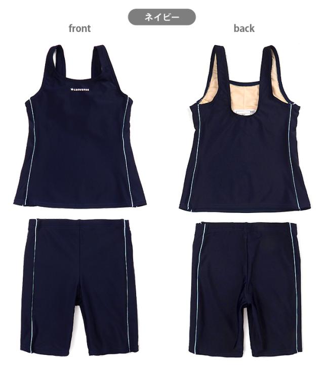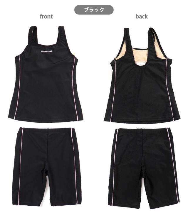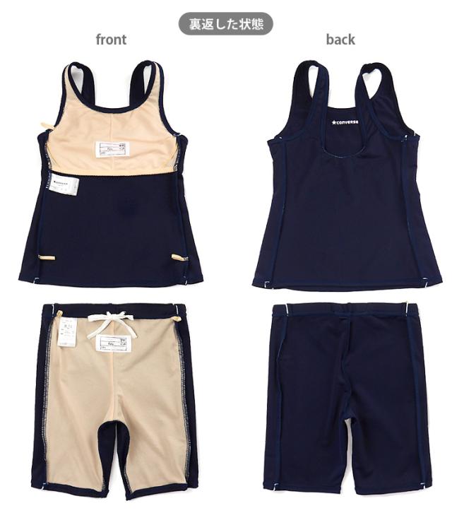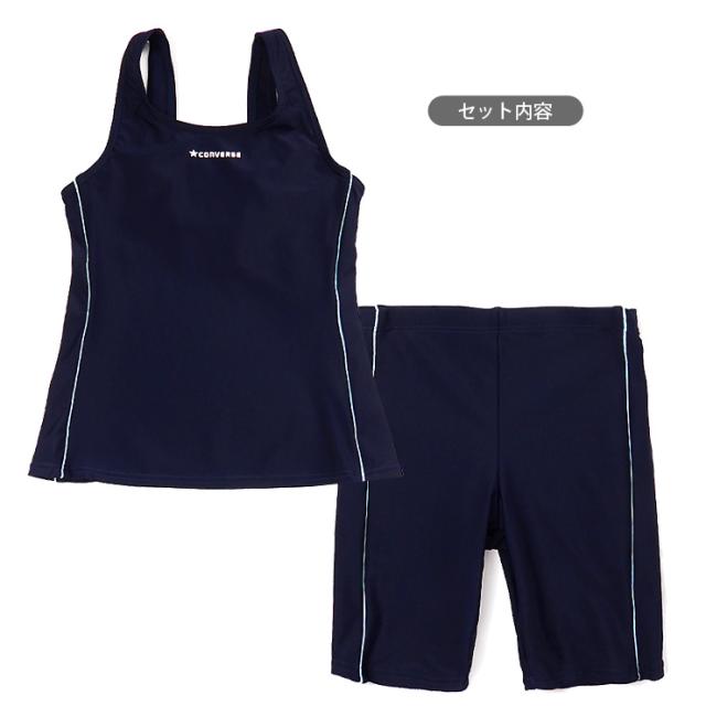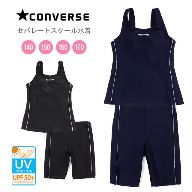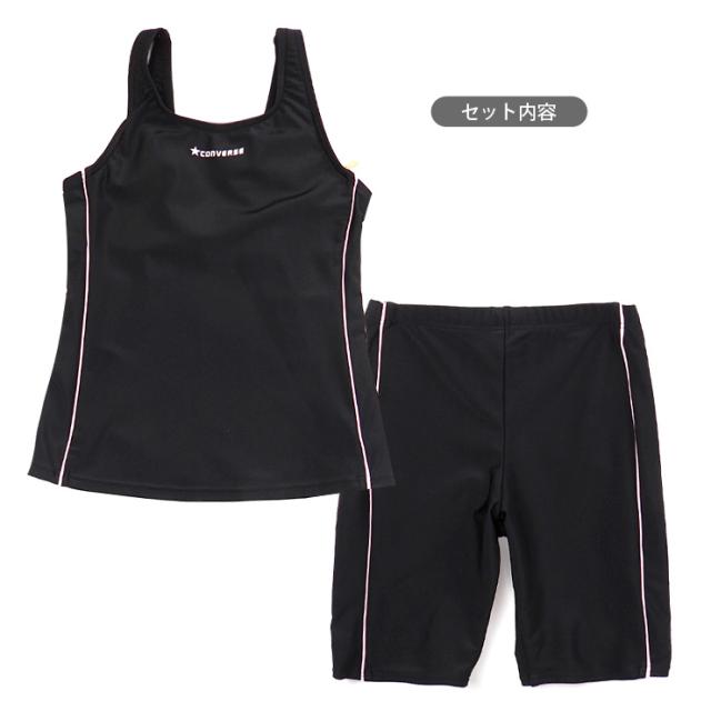 【メール便送料無料】CONVERSE セパレート スクール水着 140 150 160 170 キッズ ジュニア 300374 コンバース 上下セットアップ 女児 女の子 女子 タンキニ タンクトップ パンツ ショートパンツ 短パン パッドポケット スク水 無地 黒 紺 ブラック ネイビー sw3657