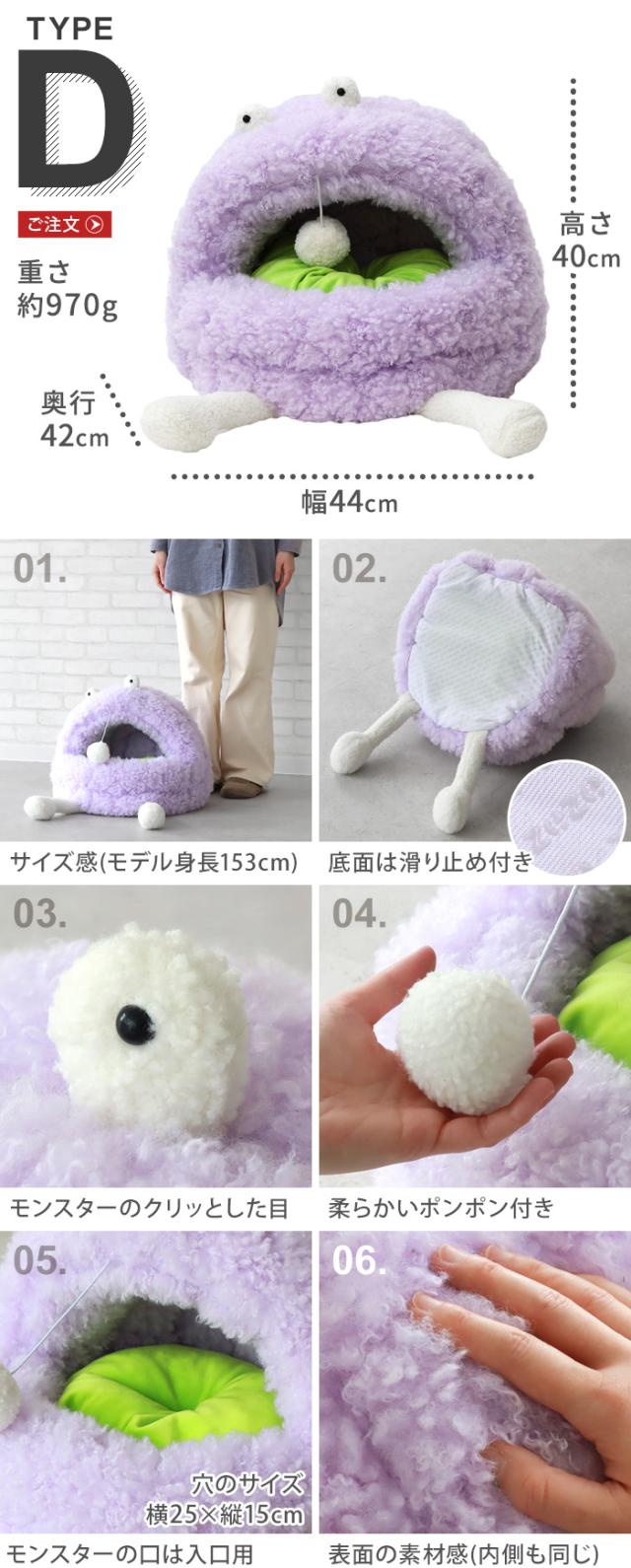 【特典付】猫ベッド ドーム型 猫 ねこ ふわふわ zeze Monster Pet Bed B ゼゼ モンスター型のペット用ベッド もこもこ ドームハウス ペットベッド ペットハウス キャットハウス クッション 冬 暖か ちぐら 隠れ家 寝床 室内用 かわいい おしゃれ 送料無料