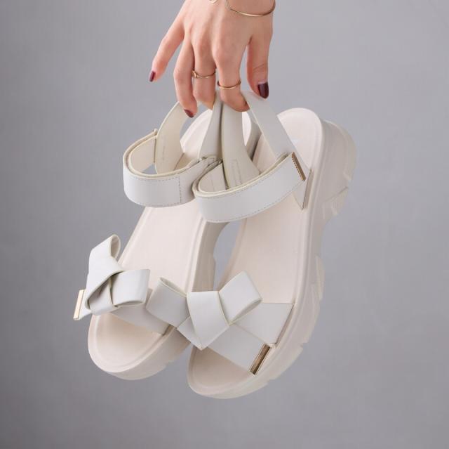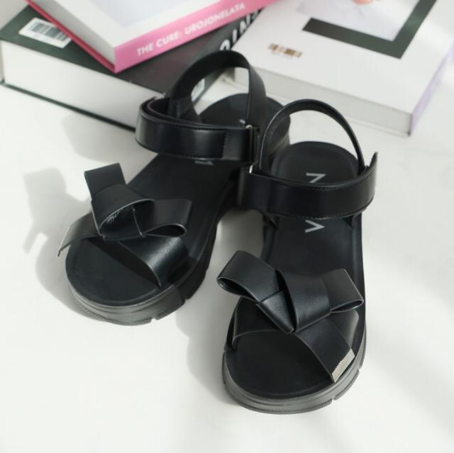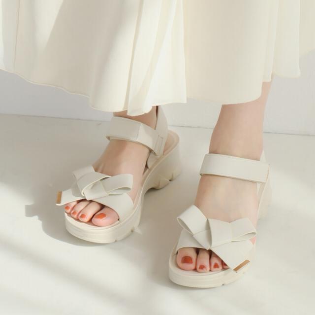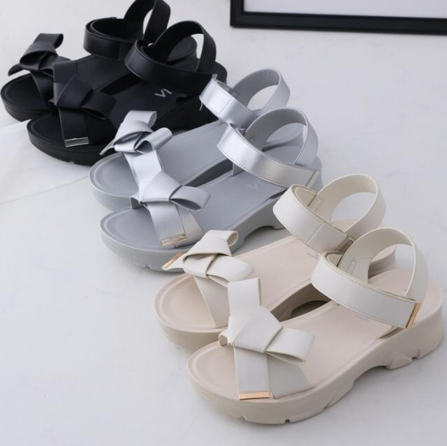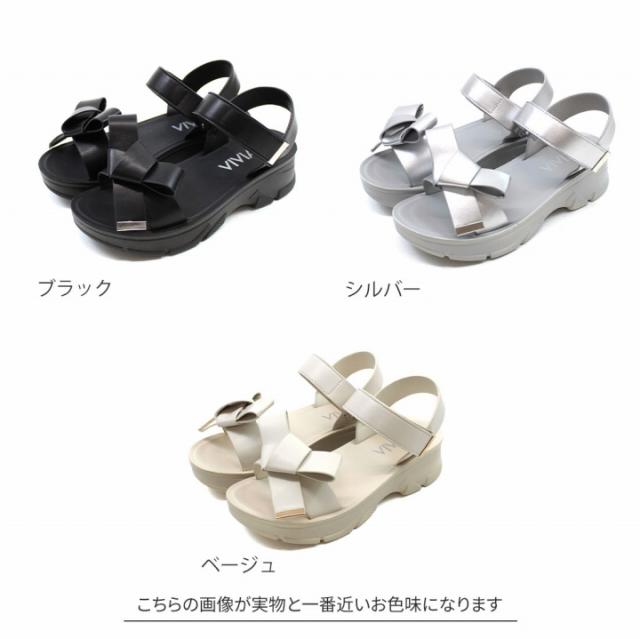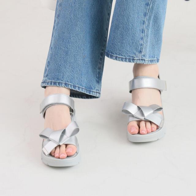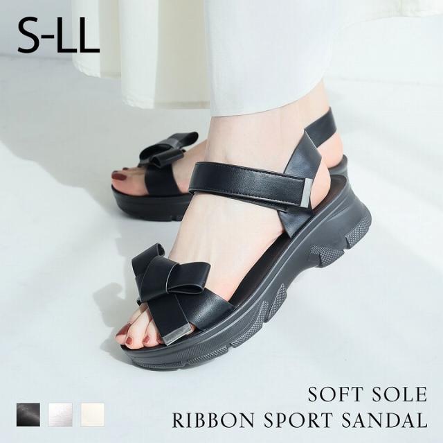【MAX20%OFFクーポン】 サンダル レディース 夏新作 やわらかい 厚底サンダル 厚底 リボン スポーツサンダル スポサン ブラック 黒 ベージュ シルバー メタリック V31042SM