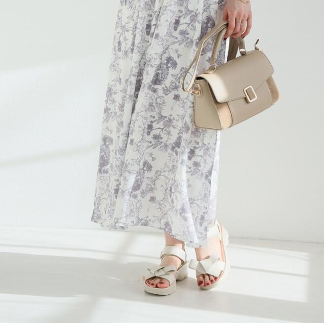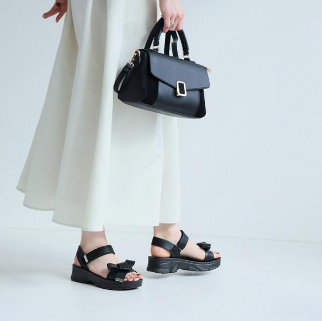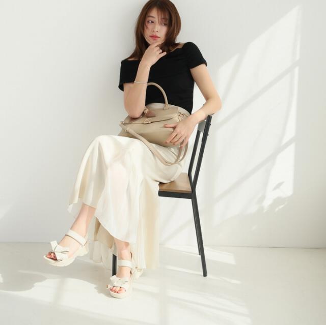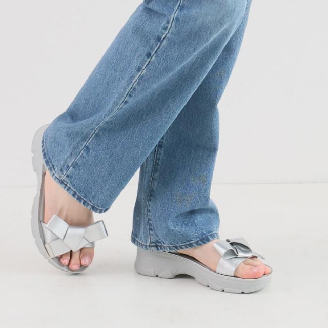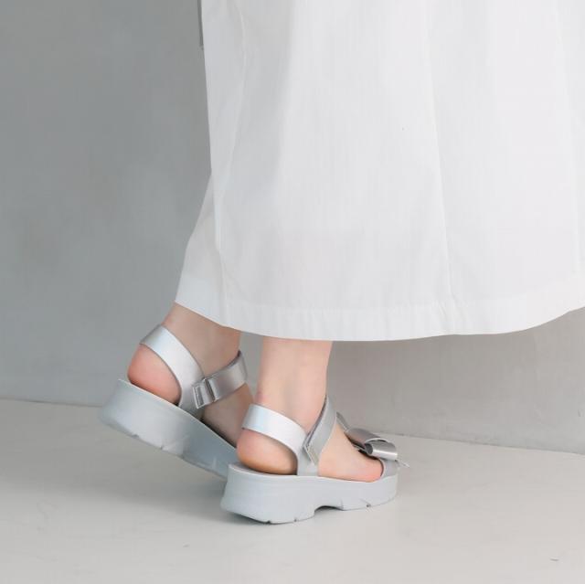 ・オープントゥで適度な肌見せと旬のボリュームのある厚底でスタイルアップした大人っぽい夏に映える足元に。