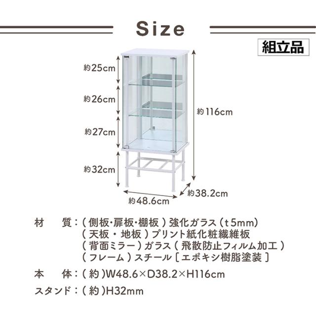 コレクションケース 棚 シェルフ 収納 3段 ミラータイプ レグラスコレクションケース TMG-G141 2色対応 コレクションラック コレクションシェルフ おしゃれ 収納棚 ガラスケース 背面ミラー シンプル