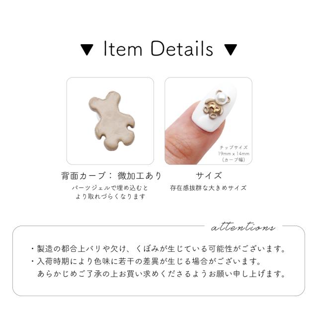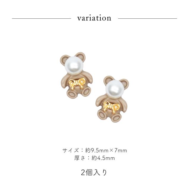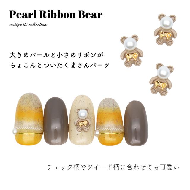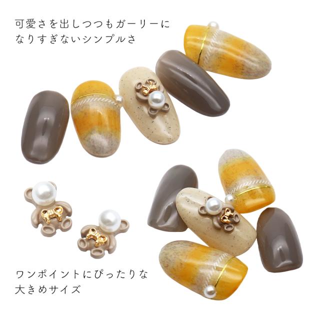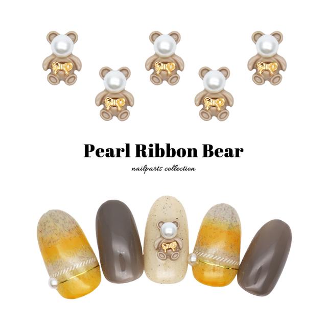 ネイルパーツ パールリボンベアパーツ ゴールド 2個入り