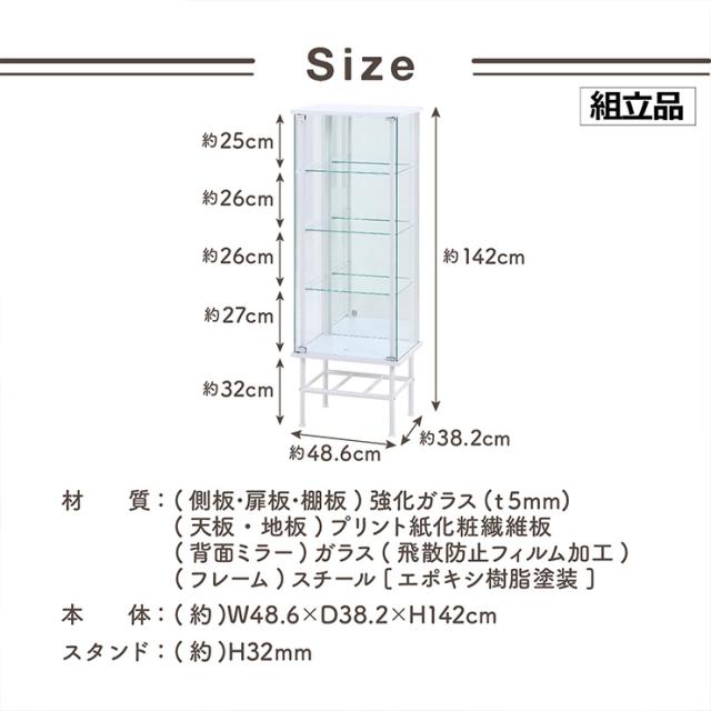 コレクションケース 棚 シェルフ 収納 4段 ミラータイプ レグラスコレクションケース TMG-G179 2色対応 コレクションラック コレクションシェルフ おしゃれ 収納棚 ガラスケース 背面ミラー シンプル