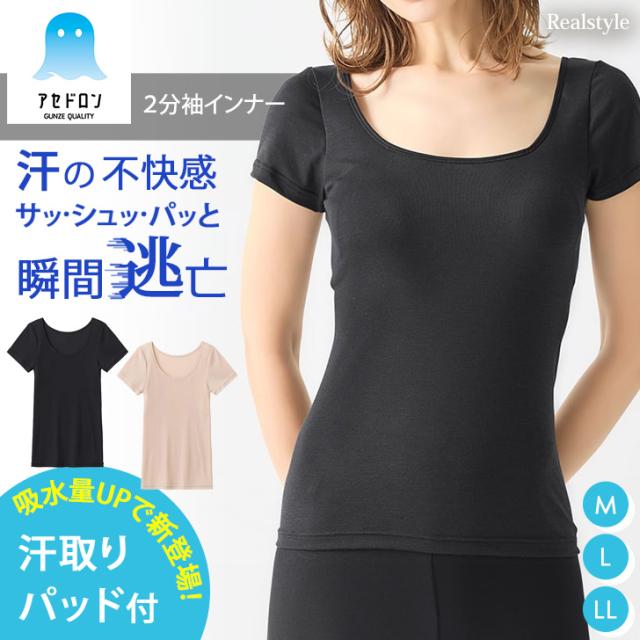 グンゼ GUNZE アセドロン 大きな汗取りパッド付き 2分袖インナー レディース MC1051P インナーシャツ 半袖 トップス 吸汗速乾 吸汗 速乾 抗菌 防臭 汗取り 汗対策 脇汗 下着 肌着 伸縮性 ブランド インナー 軽い 柔らか 伸びる 吸放湿性 放湿 汗染み防止 汗吸収 汗蒸れ 汗ムレ 汗ジミ 防止 汗とり 無地 レーヨン混 夏 サマー ASEDORON あせどろん 女性用下着 アンダーウエア アンダーウェア 抗菌防臭加工 脇縫いなし タグレス チクチクしない フィット 伸縮 柔らかい やわらか サラサラ さらさら 軽量 ドライ 汗取りパッド付き 快適 暑さ対策 蒸れにくい ムレ対策 大汗対策 汗を吸収 脇汗ガード ワキ汗 汗かき 対策 防止 ギフト プレゼント 贈り物 母の日 誕生日 スポーツ ヨガ ランニング ウォーキング アウトドア ピラティス 出張 ビジネス 仕事 オフィス 会社 作業 通勤 通学 OL 学校 屋外 屋内 ベーシック シンプル 女性 女の子 婦人 主婦 ママ 母 姉妹 姉 妹 祖母 おばあちゃん シニア 中学生 高校生 大学生 学生 大人 10代 20代 30代 40代 50代 60代 70代 デイリー 普段使い オールシーズン 通年 春 真夏 秋 冬 春夏 秋冬 ブラック 黒 ノーブルベージュ 肌色 ベージュ
