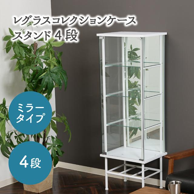 コレクションケース 棚 シェルフ 収納 4段 ミラータイプ レグラスコレクションケース TMG-G179 2色対応 コレクションラック コレクションシェルフ おしゃれ 収納棚 ガラスケース 背面ミラー シンプル