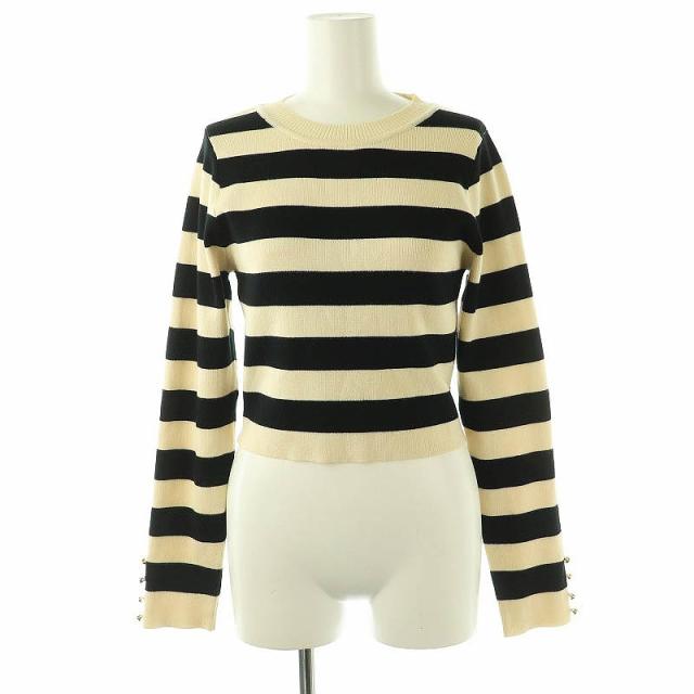 【中古】フーズフーチコ ショート丈ワイドボーダーチビニット セーター 長袖 F ライトベージュ ブラック