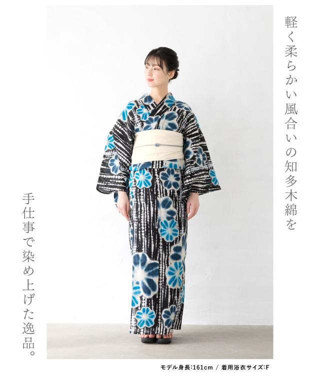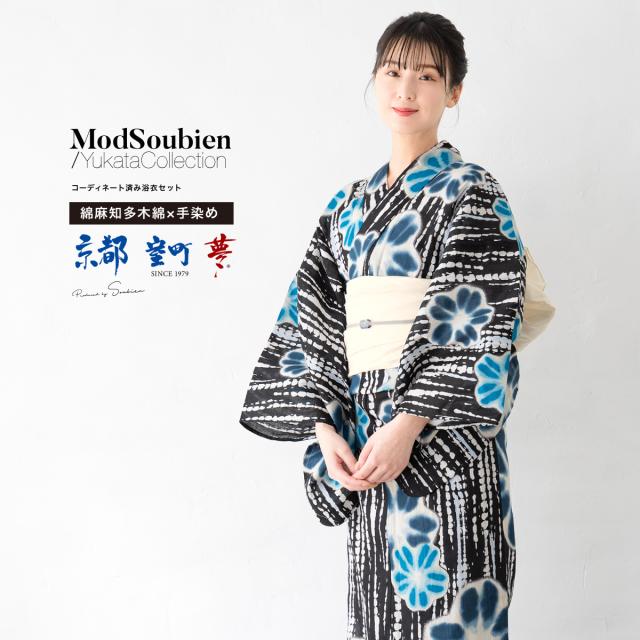 浴衣 セット レディース 浴衣セット 兵児帯 2025新作 京都室町夢 3点セット 黒 白 青 紺 絞り 花柄 縦縞 レトロモダン おしゃれ 知多木綿 綿麻 帯 下駄 フリー 送料無料