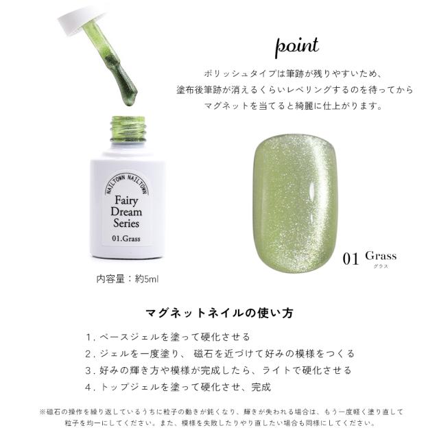 輝く粒子 マグネットネイル ネイルタウンジェル ポリッシュタイプ フェアリードリームシリーズ 黒くなりにくい 全6色 約5ml