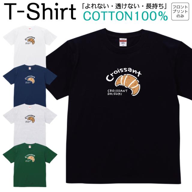 Tシャツ メンズ レディース クロワッサン 食べ物 フード イラスト パン大好き ジュニア キッズ 半袖 コットン100% 綿100% 100サイズ 120サイズ XXS XS S M L XL 5.6オンス zakka043-0705
