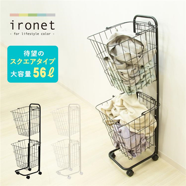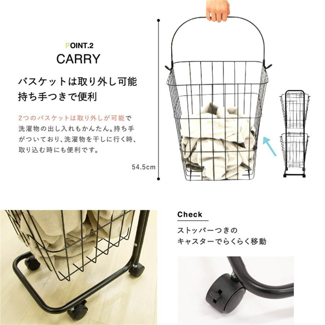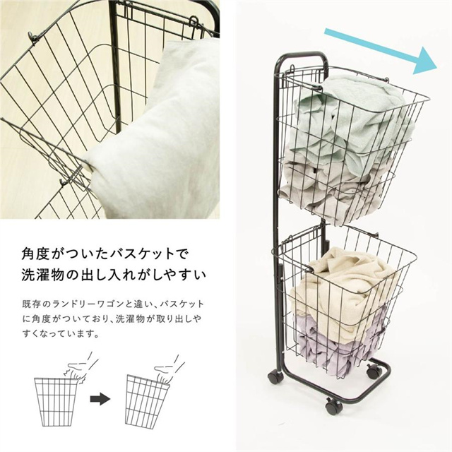 ランドリーバスケット ランドリーワゴン 2段 収納 おしゃれ スリム 大容量 ボックス カゴ タワー型 脱衣所 洗濯 キャスター付き ワイヤー 部屋干し 送料無料