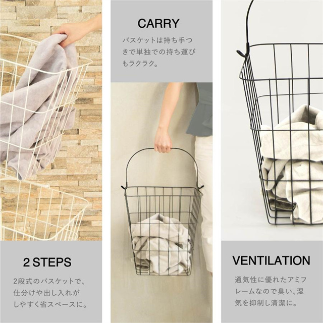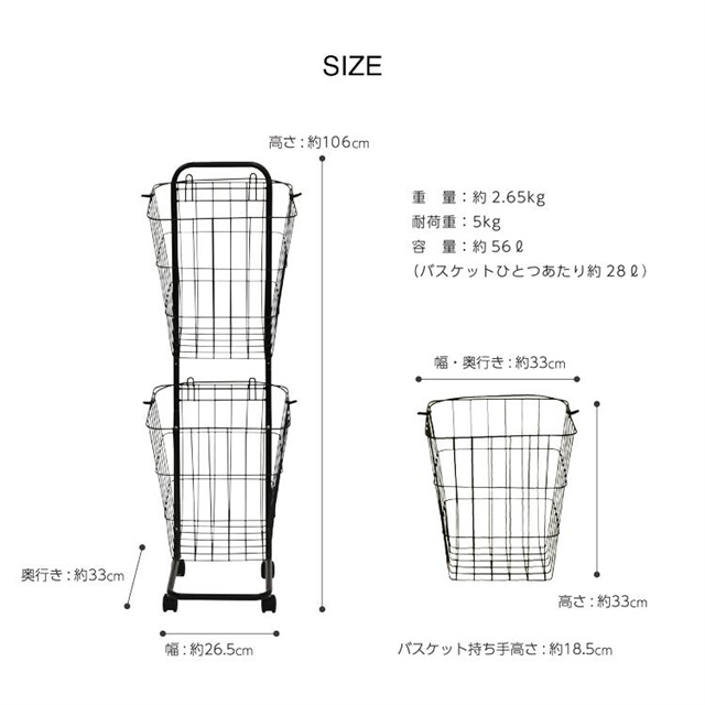 脱衣所 収納 ランドリーラック ラタン スチール 2段 二段 収納 かご バスケット ワゴンバスルーム 収納 ラック ワイヤー 洗濯物かご カゴ 新生活 家具 応援 家具 プレゼント 一人暮らし 就職 引越し 整頓