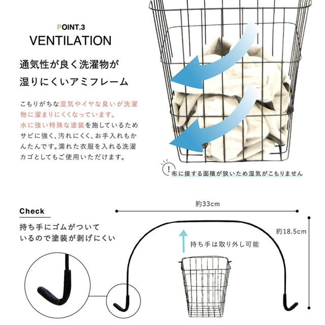 取り外せるので洗濯物の出し入れも簡単にできます。
