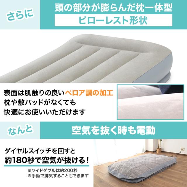 INTEX電動エアーベッド☆寝心地抜群!ベロア調&枕付き