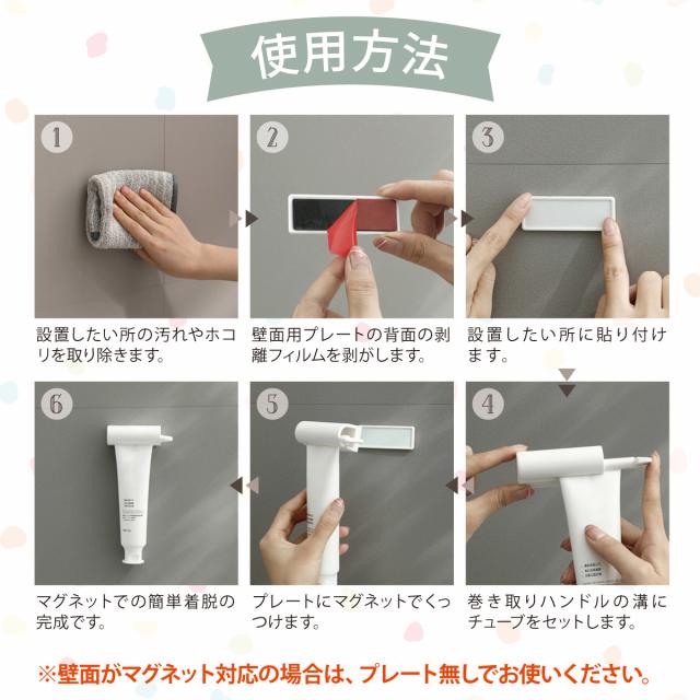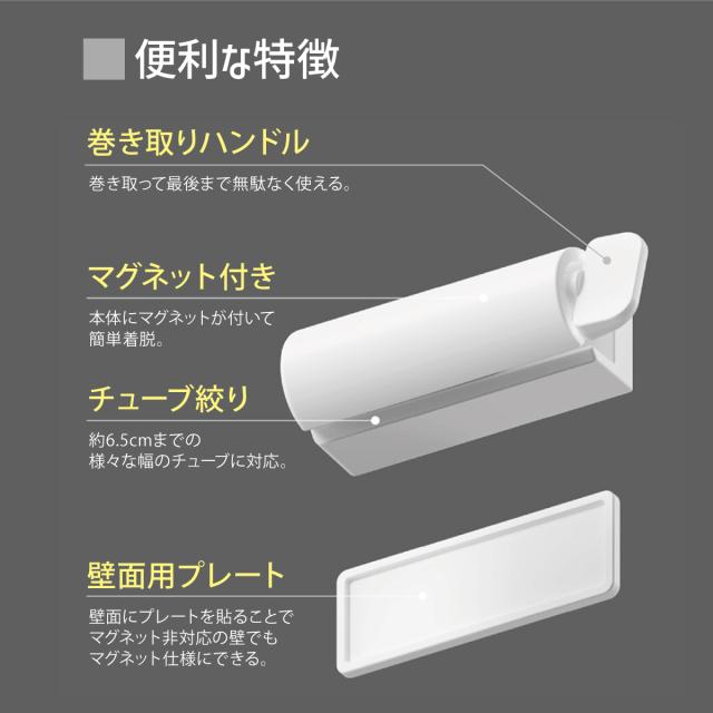 チューブクリップ チューブホルダー 巻き取り式 マグネット 歯磨きチューブ 歯磨き 洗顔フォーム 壁掛け 引っ掛け 便利グッズ tube-clip02