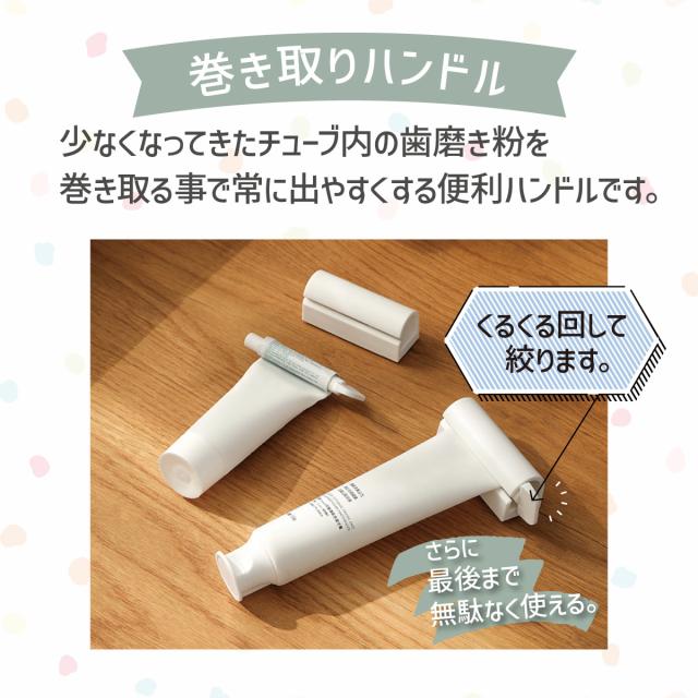 【巻き取りハンドル】少なくなってきたチューブ内の歯磨き粉を巻き取る事で常に出やすくする便利ハンドルです。