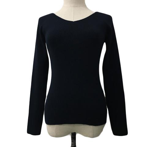【中古】マーキュリーデュオ セーター ニット プルオーバー Vネック リブ 無地 長袖 F 紺 ネイビー レディース