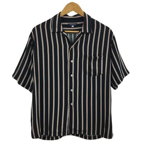 【中古】アーバンリサーチ シャツ オープンカラー ストライプ 半袖 38 黒 茶 ブラック ブラウン メンズ