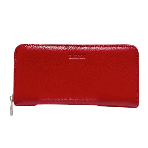 バルコス レッド レザー ラウンドファスナー 長財布 レディース【中古】