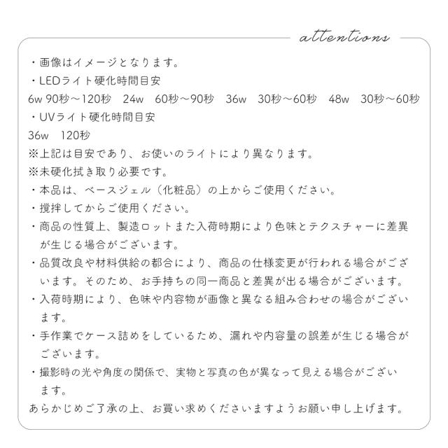 ・本品は、ベースジェル(化粧品)の上からご使用ください。