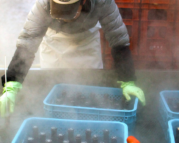 ![]() | こだわりの火入れが生む搾ったままの素晴らしい味わい 南部美人では大吟醸・純米大吟醸と一部の純米吟醸に「ビン燗火入れ」を採用しており、これは一升瓶や720ml瓶に生のお酒を詰めて湯煎で温度を60〜65度まで上げ、別の水が入った浴槽で急冷却する方法です。 このビン燗火入れ方式による1回のみの火入れが生酒と変わらないレベルでフレッシュ、フルーティーな味わいを維持しています。 また、火入れのタイミングに関しても重要視しており大吟醸・純米大吟醸クラスで搾ってから3〜7日以内。 純米吟醸・吟醸クラスでも7〜14日以内と可能な限り早い火入れをする事で、お酒を劣化させる「火落ち菌」を殺菌し、搾った時のあの素晴らしい味わいを実現しています。 |