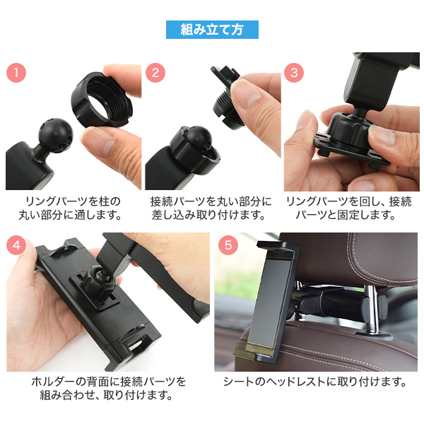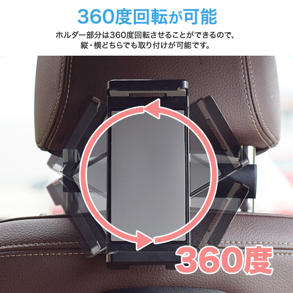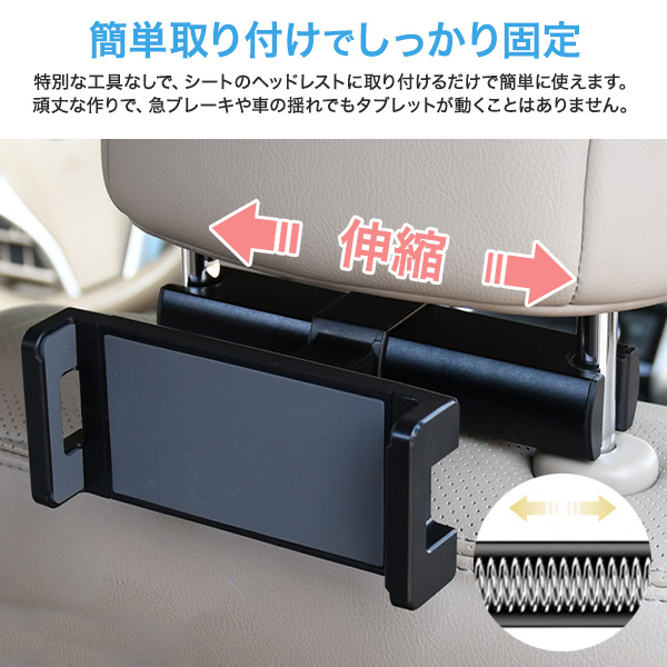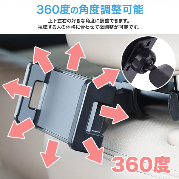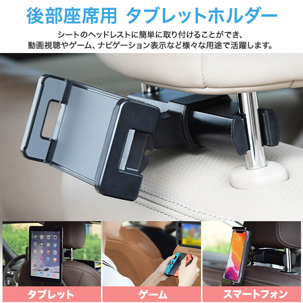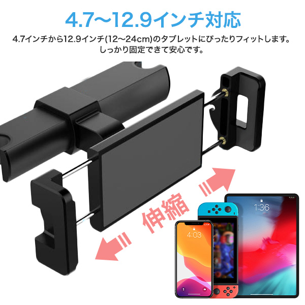 後部座席用 タブレットホルダー 4.7〜12.9インチのタブレットに対応 車用 車載用 タブレットホルダー 後部座席 動画視聴 ゲーム ナビ iPad スマートフォン switchなど ヘッドレスト 簡単取付 見やすい角度に 微調整が可能 360度回転 方向調整可能 車旅 旅行