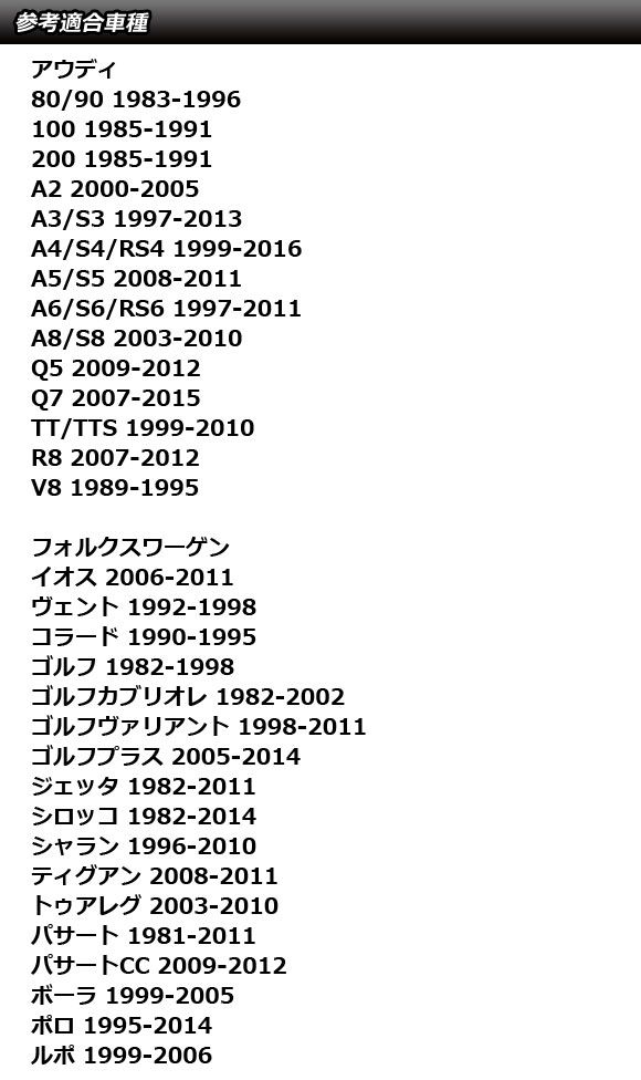 アウディ フォルクスワーゲン 汎用 A4 TT ゴルフ ポロ など